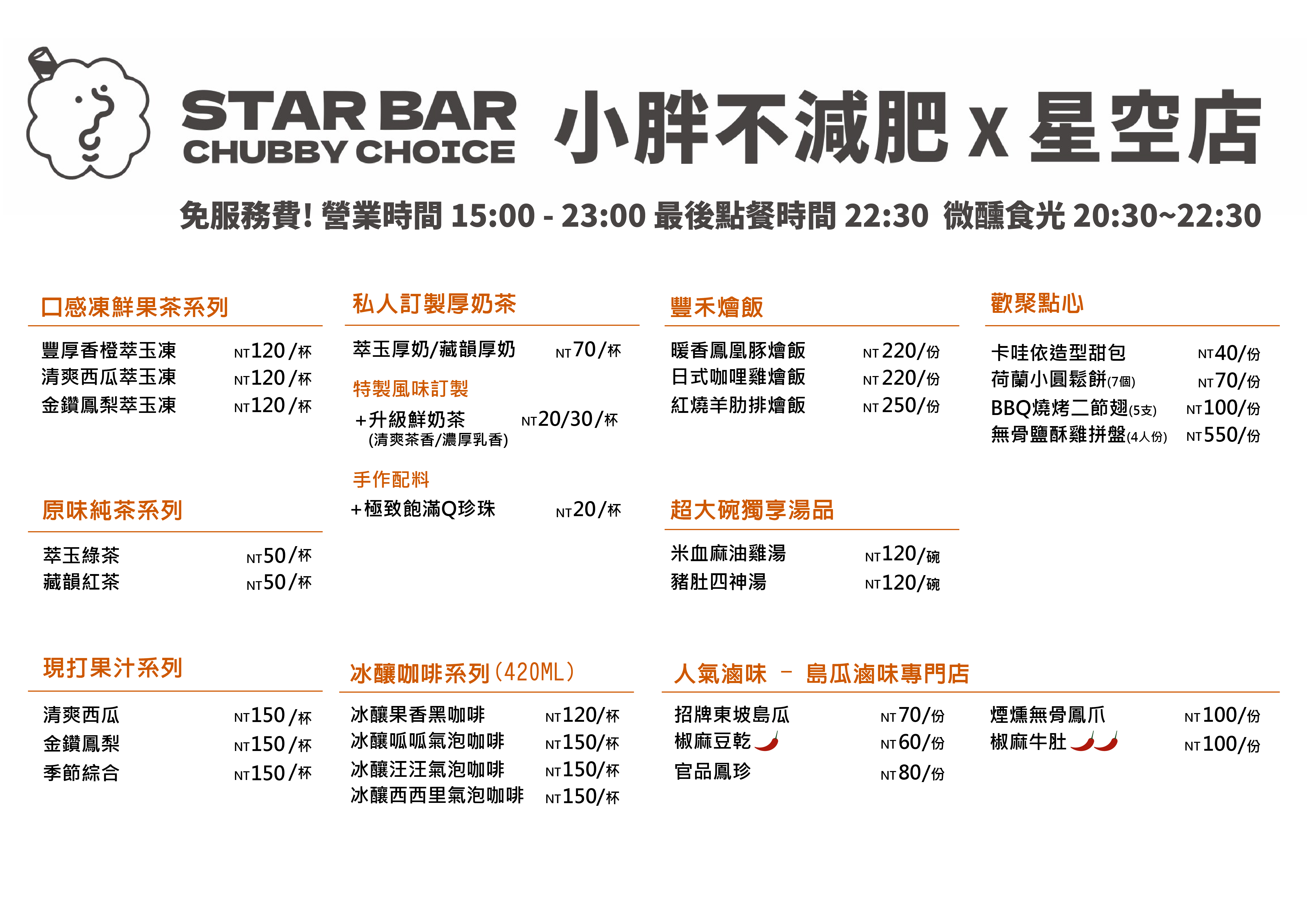 ▪可於 3F - 星空吧內 與 戶外星空廣場 享用,恕不提供外帶回房。